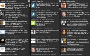 Twitter and Tweetdeck for example, have become invaluable to me as a business tool – it is an unending source of information and assistance in the SharePoint arena. I tweet 10 times more than I email or blog anymore; but for the benefit of my user base on different communication levels, I still send out all three. Joel Oleson is leading the way in this space and Endusersharepoint are hot on his heels. (Obviously there are many more, but my demographic is business users only).