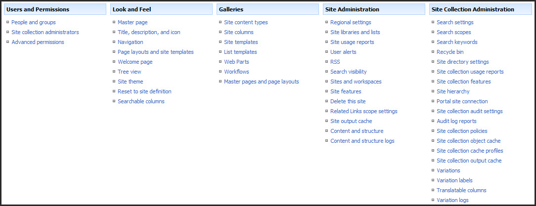 SharePoint 2007 vs 2010 for End Users : Site Settings