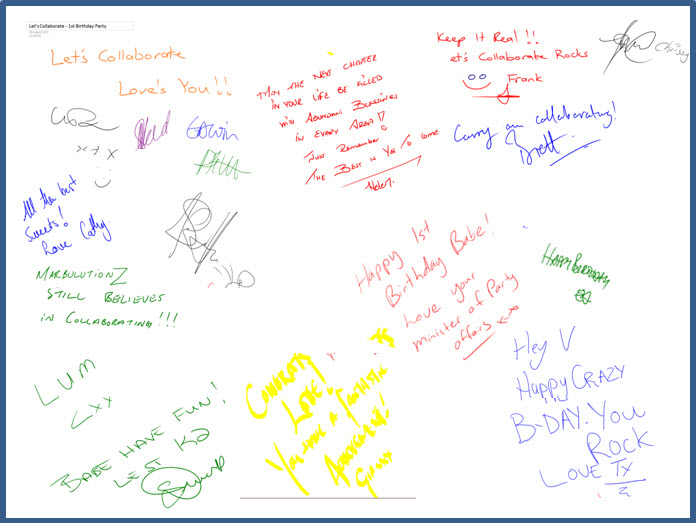 Thanks to Francois Compion for deciding to whip out his iPad and get people’s signatures. What a groovy idea! Least it kept him off my LC pullscreen which he got very attached to. 😉