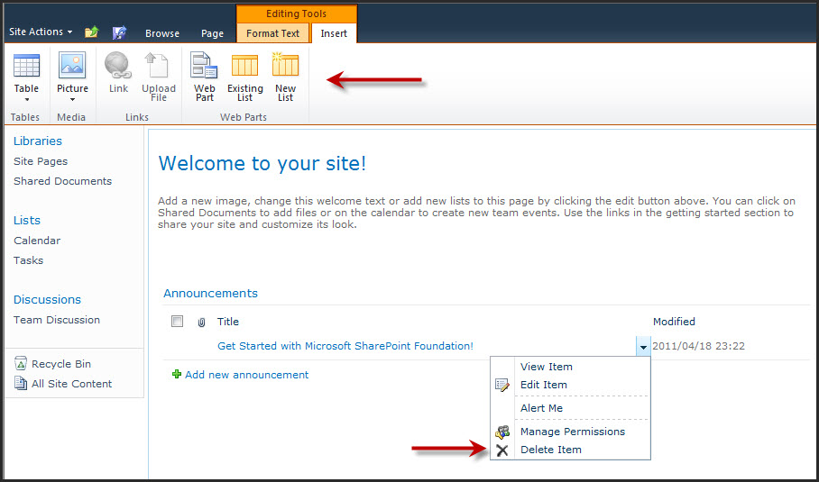 But if you look under All Site Content, and click on the Announcements web part, the item is still listed.
