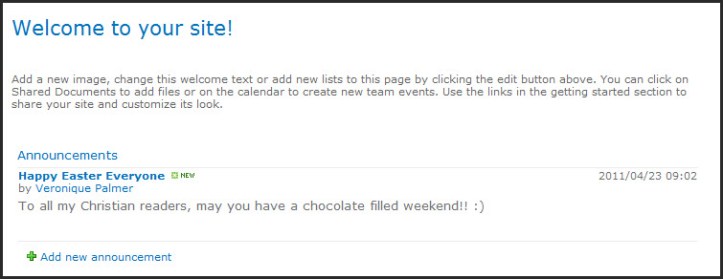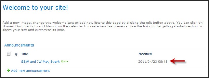 Don’t delete your old announcements, leave them stored inside the web part. This is handy for when new people join the team. They can go to the site and read about things that have happened and get a better sense of their new working environment.