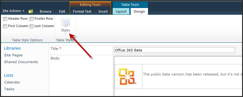You would need to edit the HTML code to fix it ….. but I’m sorry to say, this is where I get lost. You’re supposed to type in border=”0″ somewhere, but I can’t get it to work in announcements. Must be doing it wrong! 😉 I’m sure the HTML coders out there will get it sorted out chop chop. Would be nice if Microsoft fixed it though. 😉 So barring that, just be aware that the table style can’t be changed like it can in site pages.