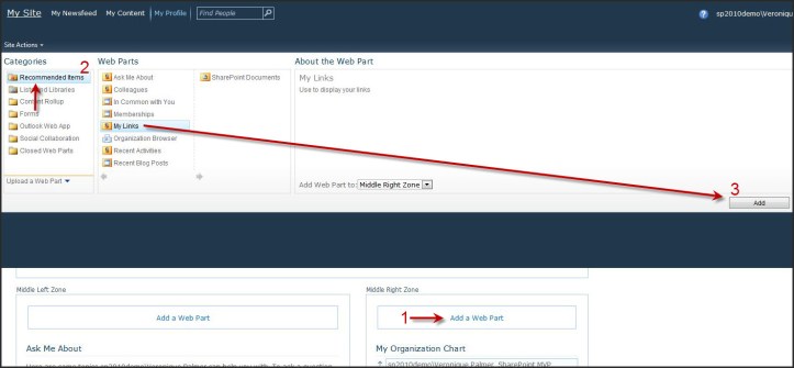 They’re doing this because the My Links functionality from SharePoint 2007 has been removed, (why oh why…). This is what it looks like in SharePoint 2010.