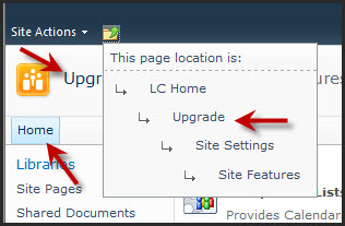 Now you’re ready to activate the 2010 home page. Click on Site Actions – Site Settings and Manage Site Features.