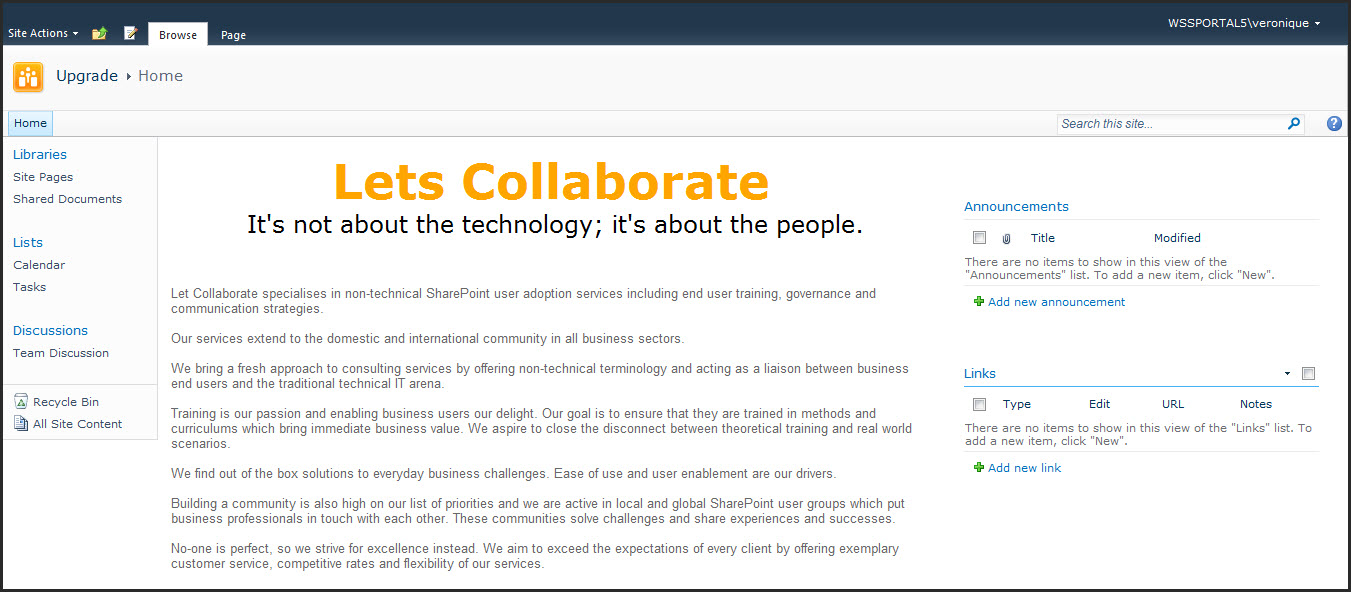 […] Upgrading from SharePoint 2007 to 2010 – Web Part Pages and Site Pages (Views from Veronique)If you have been to SharePoint 2010 Beginners training, you will have learnt about Site Pages and the quick editing available to you. If you’ve been working on SharePoint 2007 and your site has just been upgraded to SharePoint 2010, you won’t just see the new functionality. You need to change a setting first. In 2007 we’ve been using the Content Editor Web Part to make the site look pretty. After you’ve upgraded, you will see this when you click on Site Actions – Edit Page. It’s not what you’ve been taught in your training right. […]