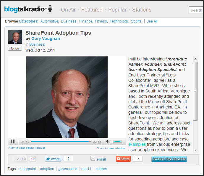 Gary Vaughan interviewed me on SharePoint User Adoption today.