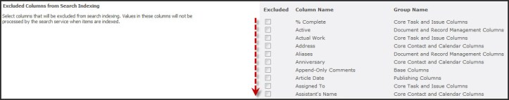 And finally, you can restrict what columns (metadata) can be searched to secure sensitive data.  Site Actions – Site Settings – Searchable Columns (under Site Administration.  This is not available in SharePoint Foundation though).  All the available columns are displayed and you can click to select the columns you want hidden, like salaries.  The columns displayed are the ones applicable to that site you’re on.