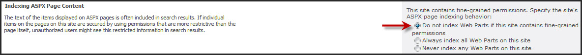 You can also drop web parts onto a page that has content with unique permissions on it.  To be extra sure that content does not get exposed by accident, you can also keep the setting for search on aspx pages.  (Look in the URL / link of your SharePoint site, at the end you will see .aspx, the sites, lists and libraries all end with that extension).  Again, Site Actions – Site Settings – Search and Offline Availability, select Do Not Index Web Parts if This Site Contains Fine-Grained Permissions; (that means unique permissions on something).