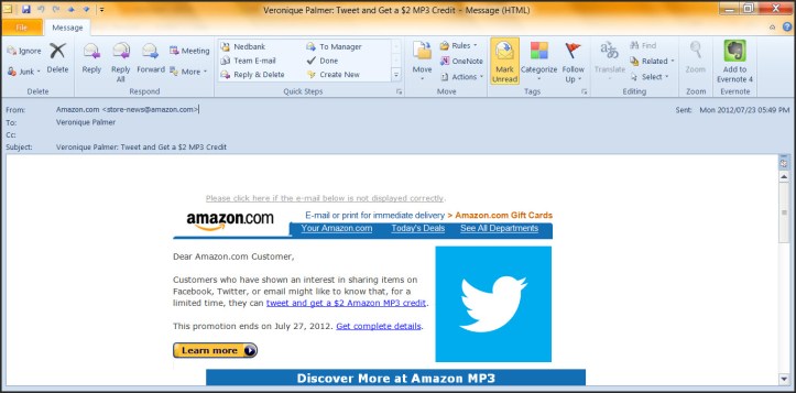 […] Outlook 2010 Emails Not Displaying Images Are all your newsletter type emails coming with covered with red X’s? It’s a built in security setting in Outlook. To get the pics to display, click the bar above the From field and then Download Pictures. And there you … Continue reading → Read More… […]