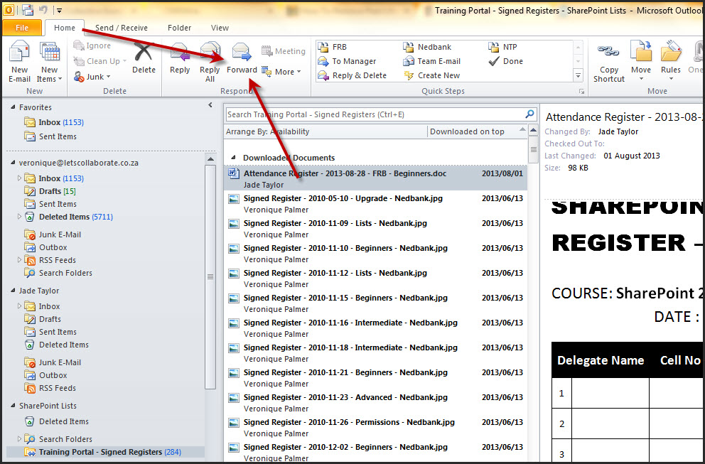 There are occasions where you’d need to email a document living in SharePoint to someone outside your company. If you don’t have an extranet environment or SharePoint 2013 external sharing allowed for them to access, you can just sync your library to Outlook instead, then forward the documents from there.