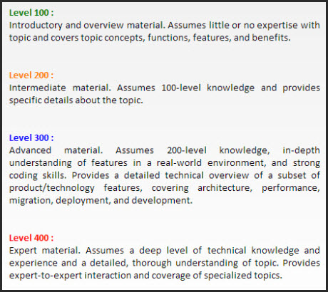- Level 300 – Site Owners, levels 100 and 200 plus able to manage permissions and architect their site/s using metadata and document / project dashboards.