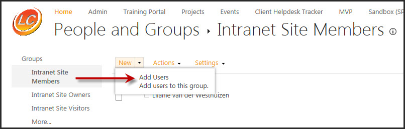 Permissions are then allocated inside the site collections – that’s what you see above. You need to do some planning to determine what site collections will needed and why. Once inside your main intranet (below), you go to Site Permissions and add the users as required so they can access the sites and information. Again, this takes a lot of planning! Call in the troops if you don’t know how to set up or plan for an intranet, we cannot stress this enough.