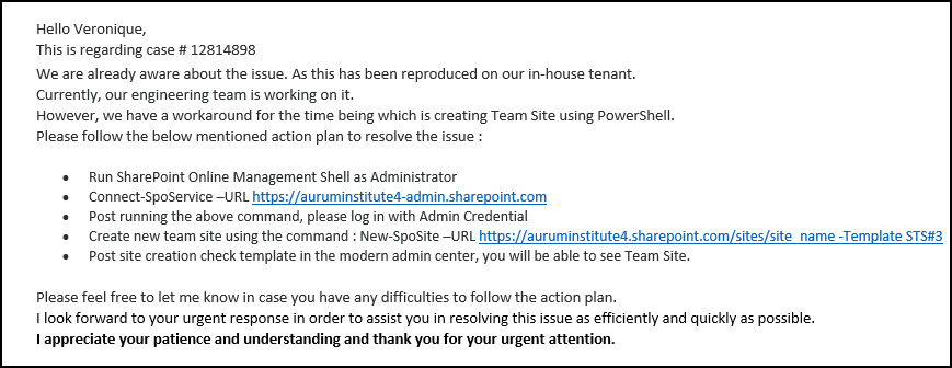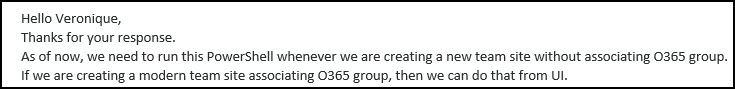 The link to the modern team site with no group is broken. It now creates Document Centres instead of team sites. It was working perfectly fine a couple of days ago, so clearly Microsoft changed something and didn’t test it properly – again. Check your tenants and log calls immediately so they can fix this with some urgency.