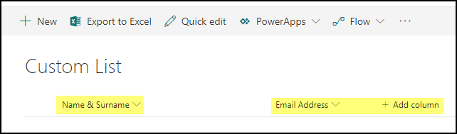 The modern app experience allows you to change and add column names right in the front-end. You want to change the default Title field in Custom Lists to something that matches the data you are capturing. So for example, if it’s a telephone list, you want it to be Name & Surname. If it’s a client database, then Company Name.