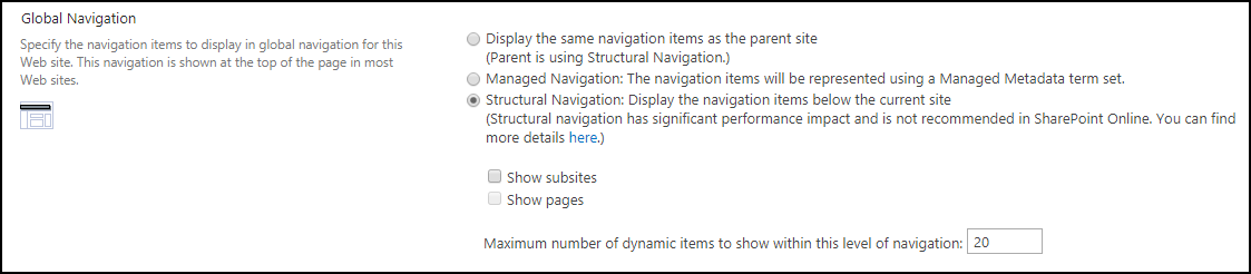 You can decide what to do about the Quick Launch – although we never play with these settings. Leave the defaults. Inheriting Quick Launch menus just causes endless drama and confusion.