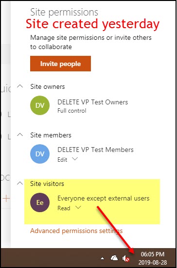 Did you know that if you try add the “everyone except external users” group to the Members or Visitors groups of Office 365 SharePoint Groups SharePoint site, that overnight, they will be stripped out? This is a “by design” “feature”, (and their workaround is ridiculous).
