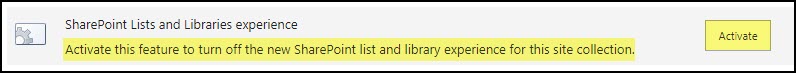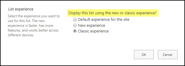 PS : Don’t do this if you are planning on using PowerApps all over the site. Then rather switch the modern experience off on an individual basis. To do this, click on the list or library you want changed, then Site Settings > List / Library Settings > Advanced Settings. Scroll all the way down to the bottom and toggle as needed.