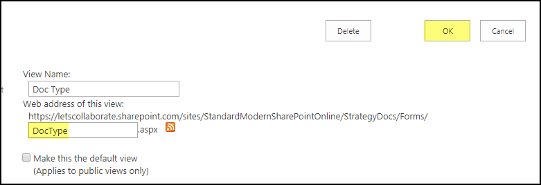 Same thing with the views you create in apps. If there’s more than one word, which there usually are, modify the view afterwards and remove the space in the link.