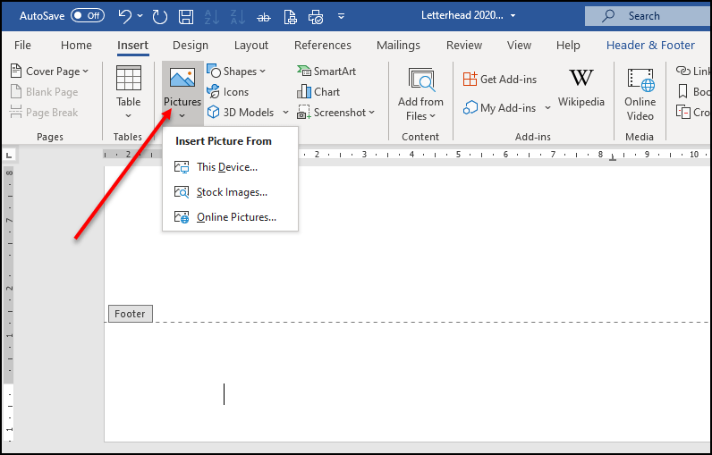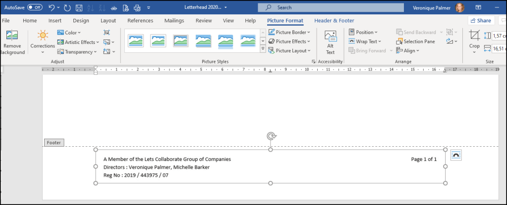 Save that image, call it Letterhead Footer 2020-08 for example so you can keep track of versions.