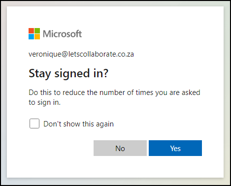 Then you can sign in again to a new tenant. If you get prompted with this, say no. That also helps.
