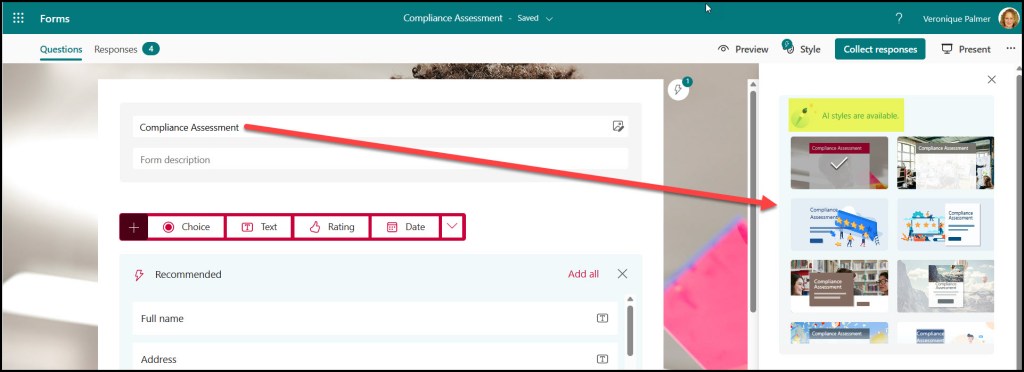 In Forms, as you start typing your form name, it interprets the words in real-time and generates an appropriately themed image for it. This is a huge timesaver.