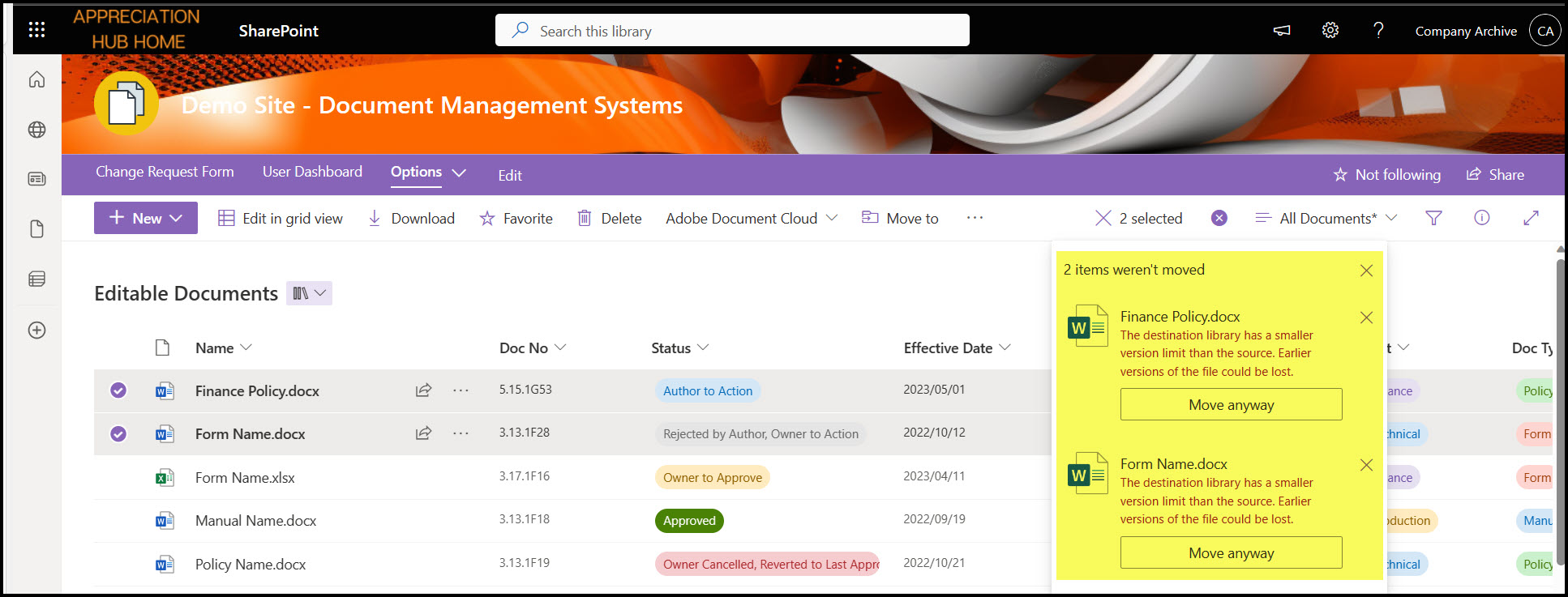 This results in them running all over the show trying to find work-arounds, like manually trying to delete versions of documents and being forced to choose what documents to delete.