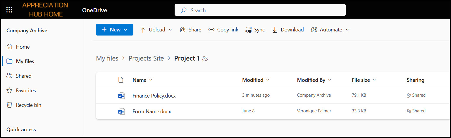 - Put a link to the OneDrive archive account on the intranet navigation so people can get to it easily.