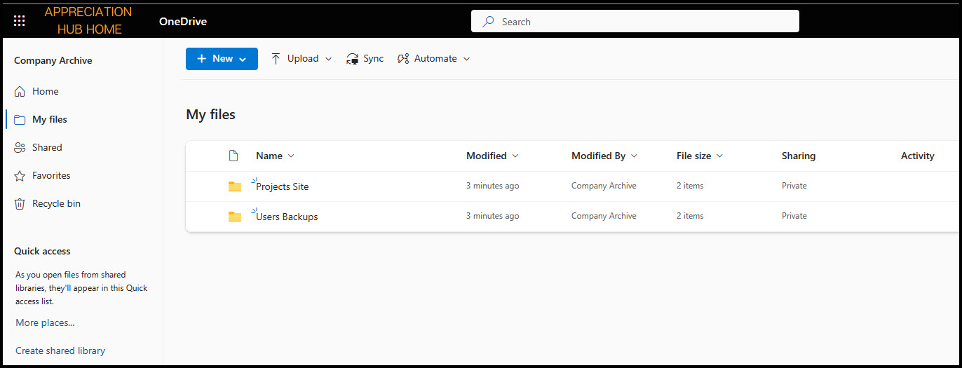 - For user accounts of ex staff – create a top-level folder called Users Backups and put all their content as is in folders per user below that.