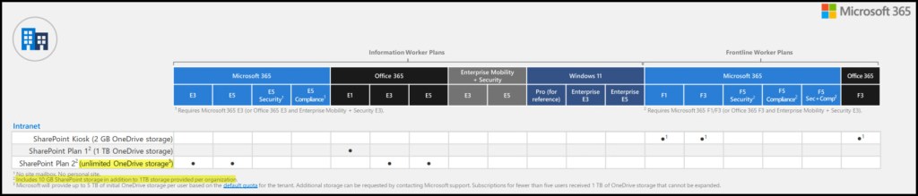 So even if there are only 10 people in the company, you can have an extra 250TB for users, but you can only have 0,4% of that for an official company intranet on SharePoint! This defies explanation and it is destabilizing companies.