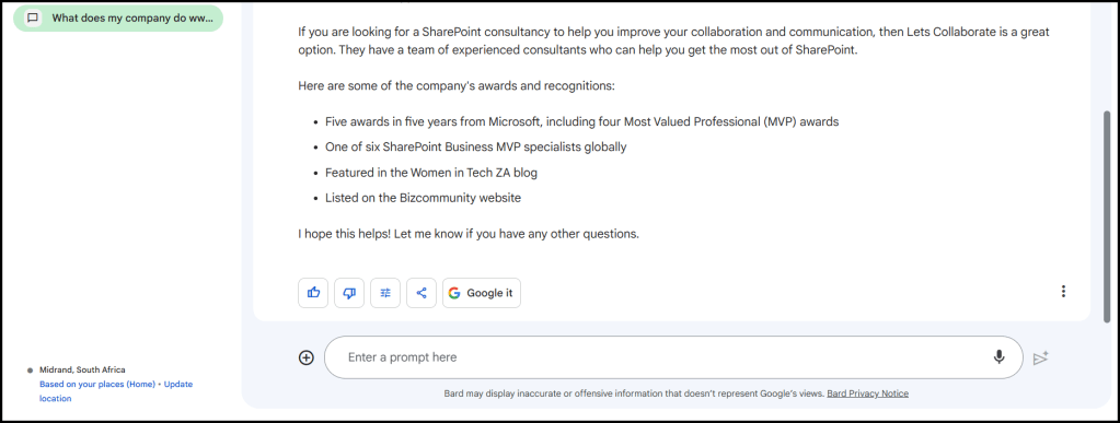 So I asked the other players the same question. Bard is the best! I’ve had pretty good answers from Bard consistently this year. It wasn’t a complete assessment, but the best of the bunch.