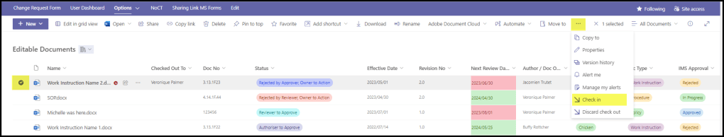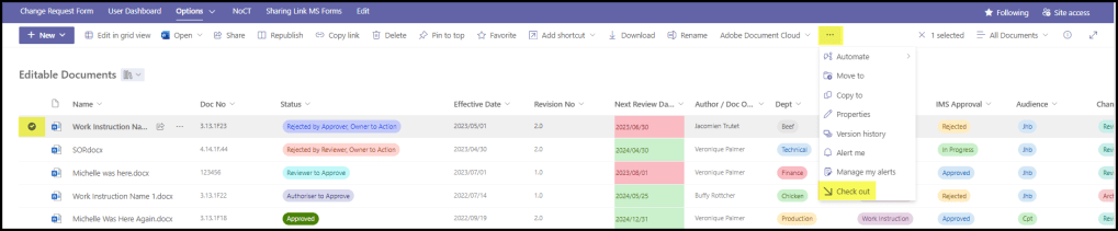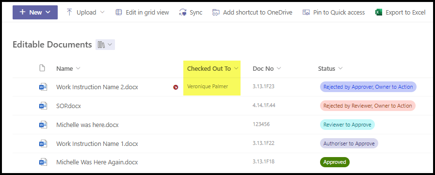 Add the column “Checked Out To” if this is a feature you’re going to use a lot. That way you can see instantly who has the document, and contact them if you need them to check it back in.