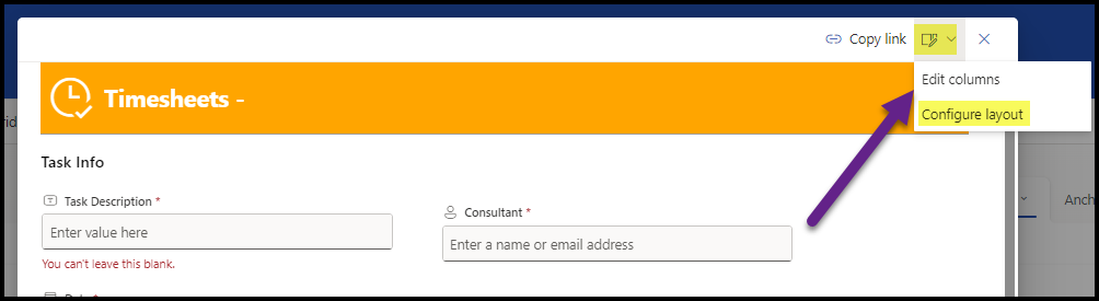 You can add the JSON scripts in the ‘Configure Layout’ option from the top right of any item you have clicked on to view in a list, or in the ‘New’ form.