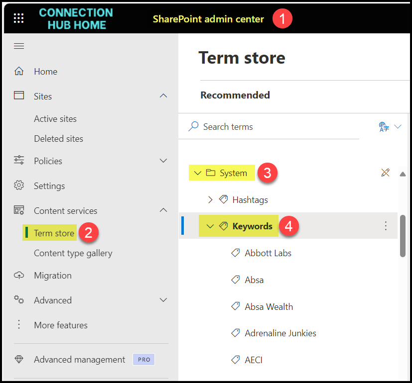 Manage them in the SharePoint Admin Centre in the Term Store.