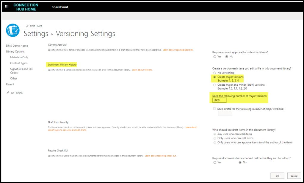 These are the settings for major versioning.