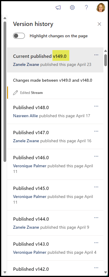 You can rack up hundreds of versions on pages depending on what they are. It here’s one that has 149 versions already. It would be impossible to find an older one without it taking a very long time. So, before you do any major design change, take a screenshot and keep it. That way, if you mess up the design, you can find your way back again easily.