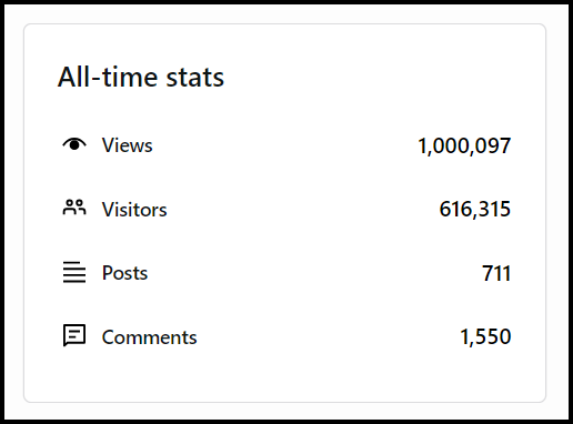 It’s taken 15 years, over 600 000 people and 711 posts to finally put me in the INTERNET MILLIONAIRES CLUB! I am utterly delighted and over the moon!